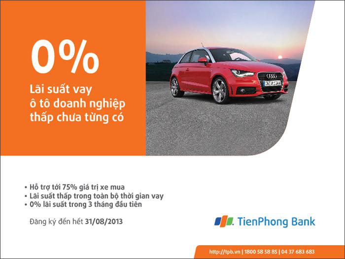 To assist enterprises in buying cars for travel and business demands, Tien Phong Commercial Joint Stock Bank (TPBank) has deployed a program of business auto loans at 0% preferential interest rate, and loan-to- value ratio up to 75%.