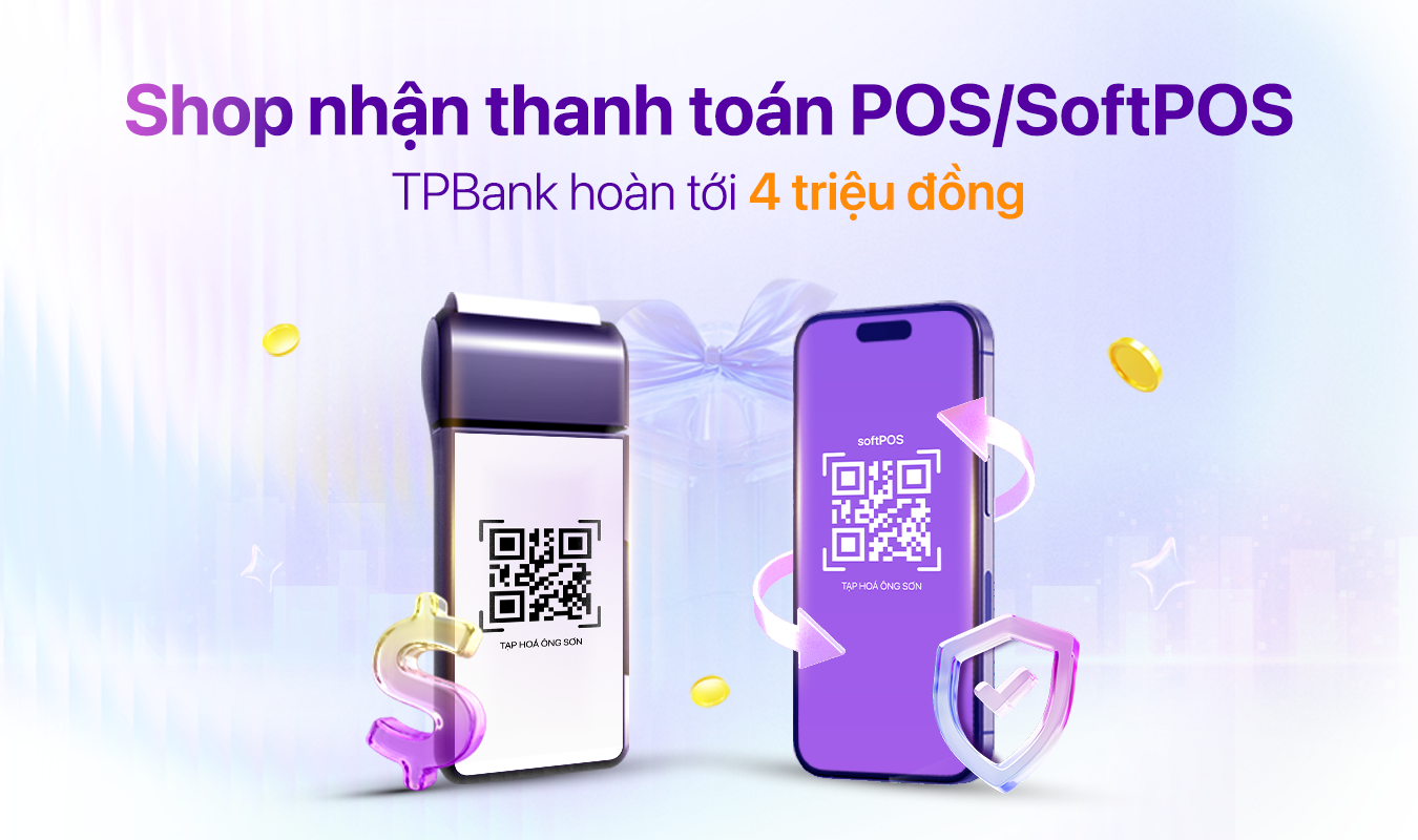 Từ ngày 01/11/2025 đến hết ngày 28/02/2026, TPBank triển khai chương trình "Giao dịch càng nhiều – Hoàn tiền càng lớn" dành cho các Khách hàng sử dụng sản phẩm chấp nhận thanh toán thẻ (POS/SoftPOS) với 02 quyền lợi hấp dẫn: