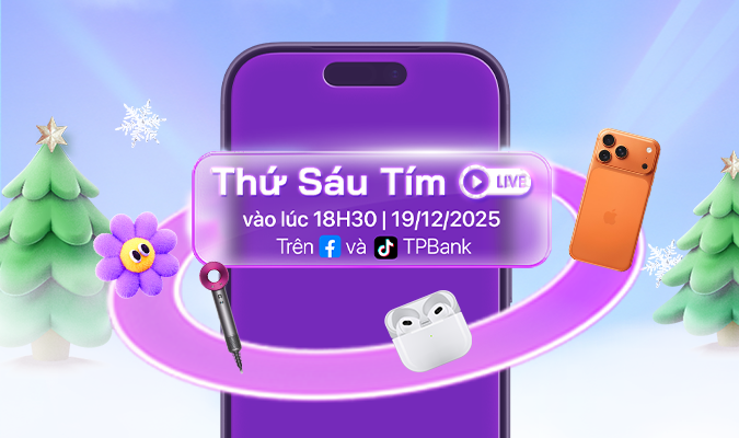 Đừng bỏ lỡ phiên Livestream Thứ 6 Tím -Bừng Sáng Giáng Sinh tại kênh TikTok & Facebook của TPBank vào 18:30 ngày 19/12/2025. TPBank đang có rất nhiều deal hời đợi bán khám phá đó nha!