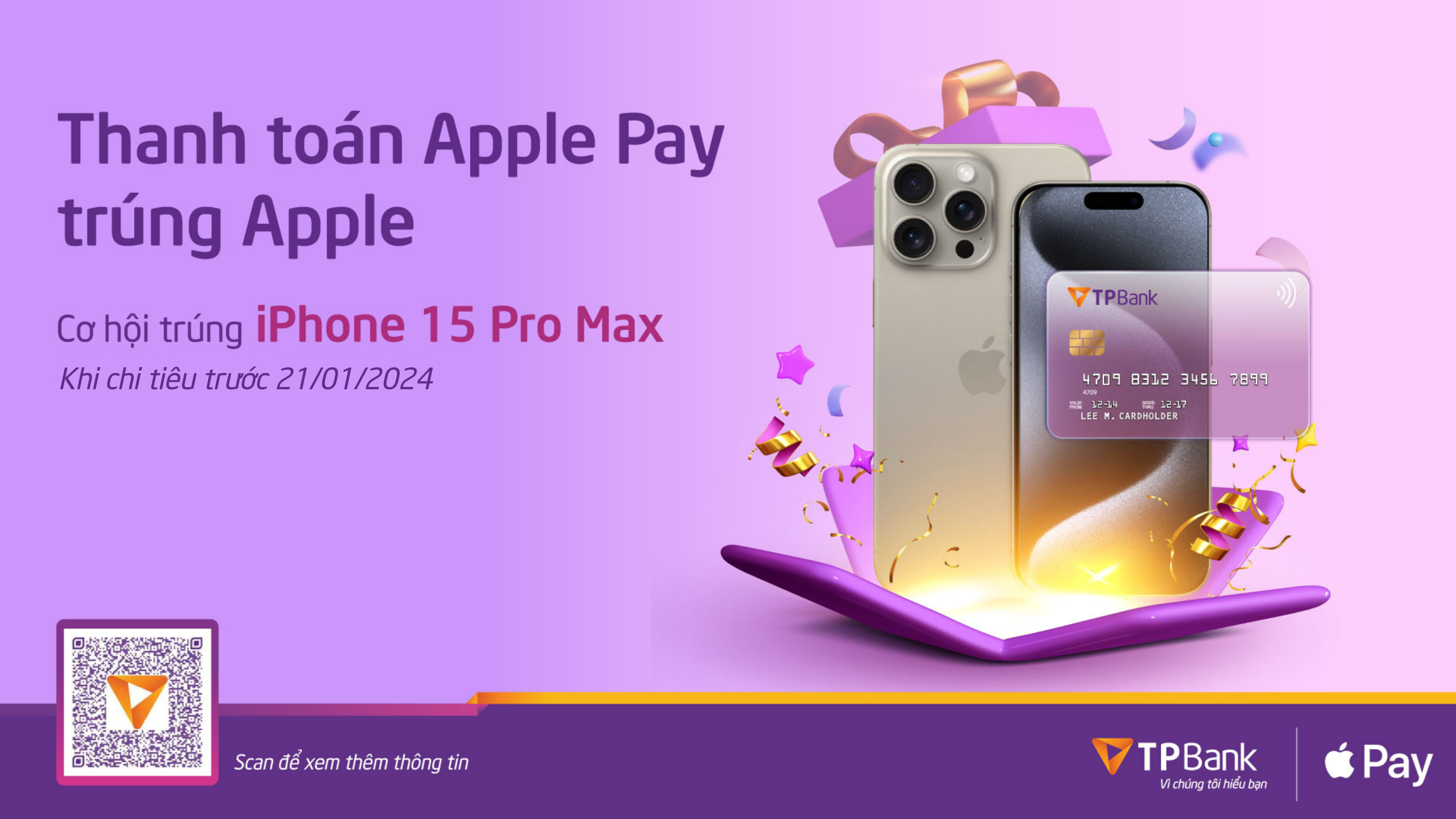 Cơ hội trúng ngay iPhone 15 ProMax 256GB khi thực hiện thanh toán Apple Pay với thẻ TPBank
