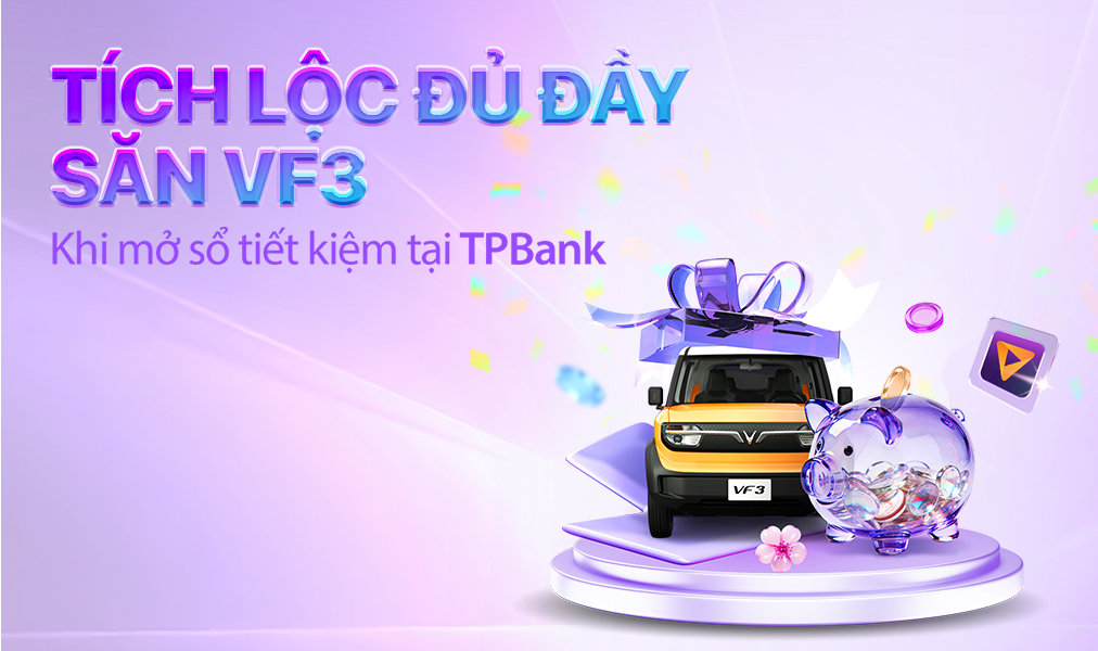 Đầu năm Tích lộc với cơ hội rinh ngay xe ô tô điện VinFast VF3 cùng vạn lì xì nhận vía thần tài, khi Bạn gửi tiết kiệm tại TPBank từ ngày 23/02/2026 - 31/03/2026. Theo đó, với mỗi khoản tiết kiệm hoặc tiền gửi có kỳ hạn mới, Bạn sẽ được tham gia chương trình quay thưởng may mắn mỗi ngày để rinh về ngay ngàn quà tặng hấp dẫn.