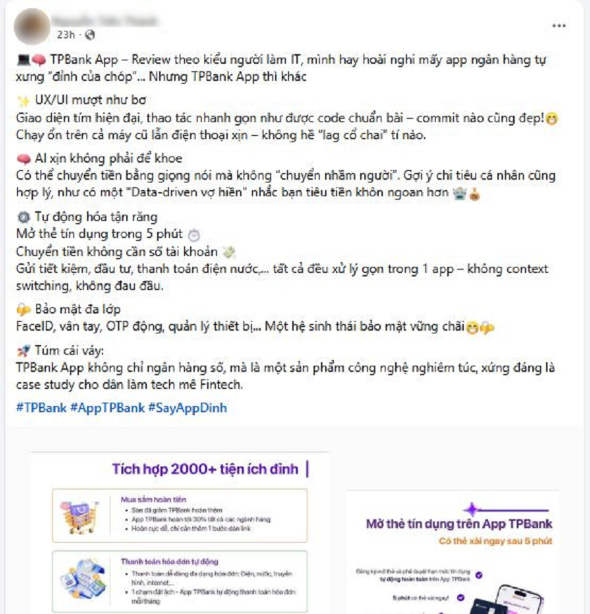App TPBank nhận được nhiều phản hồi tích cực từ người dùng với những tính năng, trải nghiệm "đúng người – đúng lúc – đúng nhu cầu"