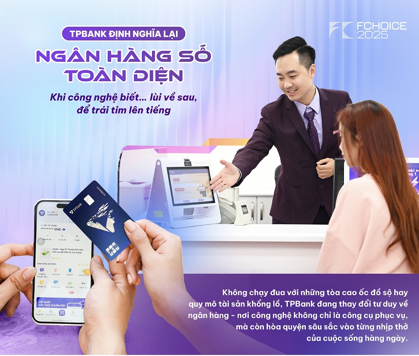 Không chạy đua với những tòa cao ốc đồ sộ hay quy mô tài sản khổng lồ, TPBank viết nên hành trình của "Ngân hàng số toàn diện" nằm ngoài khuôn mẫu, nơi công nghệ không chỉ là công cụ phục vụ, mà còn hòa quyện sâu sắc vào từng nhịp thở của cuộc sống hàng ngày, khiến bạn quên mất rằng mình đang sử dụng dịch vụ ngân hàng. Như lời một lãnh đạo TPBank từng chia sẻ: "Sự thoát khỏi những giới hạn truyền thống của TPBank là mức cao nhất của sự thân thiện và tích hợp. Nó hoạt động mượt mà, đúng lúc, đúng chỗ, khiến người dùng không còn cảm thấy đang dùng ngân hàng, mà chỉ đơn giản là đang sống tiện lợi hơn."